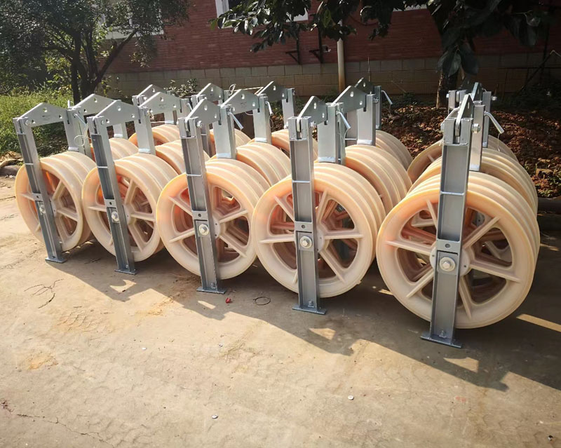 5、平行線拐角塔前后左右也不適合設定張力機,由于導線根據放線滑輪鋼筋錨固很不便捷。